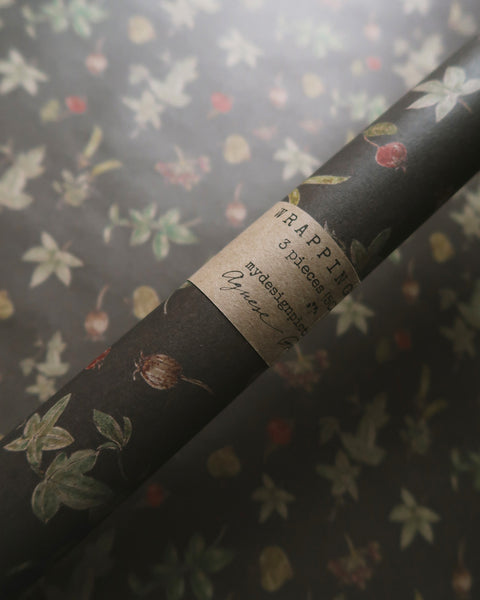 SET OF 3 pieces BOTANICAL kraft wrapping paper